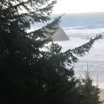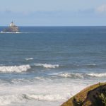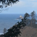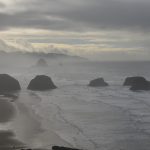 Van achter de boomtoppen zie je af en toe de ruige kust van Oregon verschijnen. Na ongeveer twee kilometer zie je de ingang van het Ecola State Park, waar je ook dient te betalen als je het park met een voertuig binnen rijdt. Lopend is het gratis. Je komt hier bij een ruime parkeerplaats van het Ecola Point. Vanaf hier heb je fantastisch uitzicht over de ruige en mysterieuze kust. Wolken maken deze kust tot een enorm fotogenieke plek. Je kunt zelfs Haystack Rock in de verte aanschouwen. Hier heb je ook de mogelijkheid om de Sea Lion Rock Arch te bekijken. In de winter zijn er enkele wandelpaden afgesloten vanwege de veiligheid, maar in de zomer moet de Sea Lion Rock Arch zeker te aanschouwen zijn. Ook zie je in de verte het ‘ieniemienie’ Tillamook Rock Lighthouse liggen in de zee.