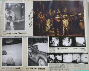 Over de volgende dag schrijft Kennedy: “Langs het museum geweest en Rembrandts beroemde Nachtwacht gezien, dat zo’n interessante historie heeft.” In onze hoofdstad bezoekt hij ook een arts. JFK blijkt allergisch te zijn voor hondenhuidschilfers. Dunker is de oorzaak van zijn gesnotter en ze zullen van hem af moeten. Ze reizen door naar Den Haag, waar ze de teckel voor vijf gulden verkopen aan een man die ze ontmoeten bij de American Express in het centrum. Het doet pijn aan hun hart. Nog eenmaal poseren ze met het hondje, zittend op het spatbord van de Ford, voor Sociëteit De Witte aan het Plein (zie foto hieronder). Voor beiden blijft het hondje altijd een symbool van hun vooroorlogse Europese avontuur.